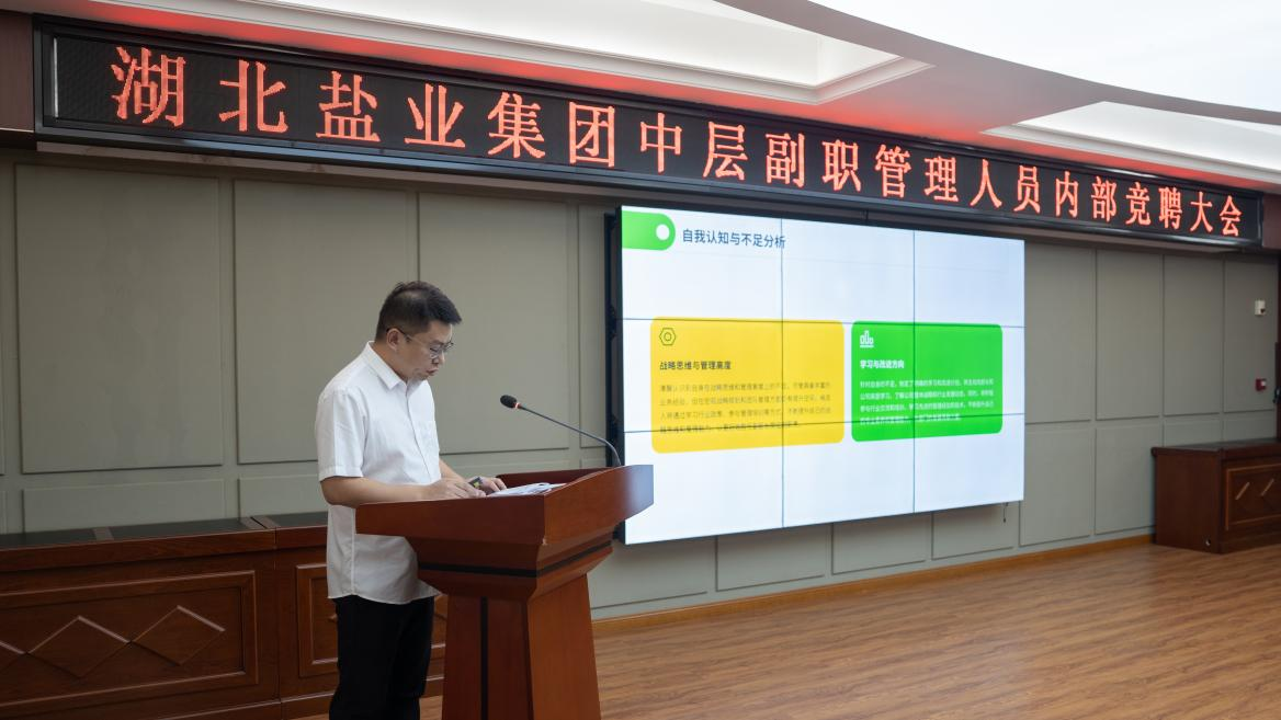 自競(jìng)聘公告發(fā)布以來(lái),湖北鹽業(yè)集團(tuán)各分子公司、總部各部室職工積極響應(yīng)、踴躍報(bào)名。經(jīng)資格審查,共有11名競(jìng)聘人員進(jìn)入綜合測(cè)評(píng)環(huán)節(jié)。競(jìng)聘人員在演講展示、現(xiàn)場(chǎng)答辯等環(huán)節(jié)沉穩(wěn)自信,全方位展示自己的專(zhuān)業(yè)素養(yǎng)、管理能力以及現(xiàn)場(chǎng)應(yīng)變能力。在綜合測(cè)評(píng)現(xiàn)場(chǎng),評(píng)委根據(jù)應(yīng)聘人員整體表現(xiàn)量化評(píng)分,現(xiàn)場(chǎng)公布成績(jī),并設(shè)置職工現(xiàn)場(chǎng)“觀(guān)摩席”。紀(jì)檢工作部對(duì)競(jìng)聘全過(guò)程進(jìn)行監(jiān)督,確保全程公開(kāi)透明。