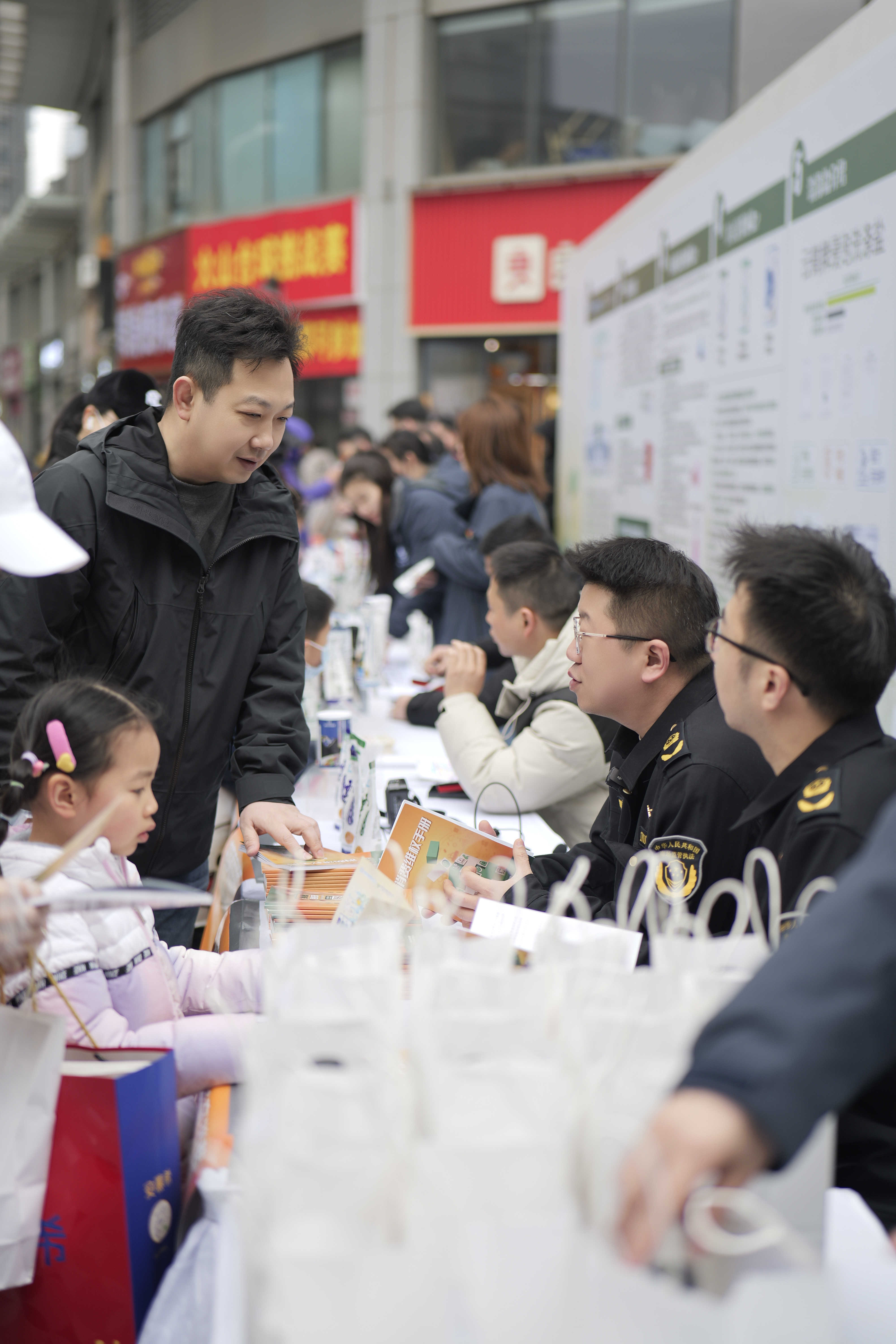 消費(fèi)維權(quán)咨詢服務(wù)臺(tái)前人來(lái)人往,江漢區(qū)市場(chǎng)監(jiān)管局、花樓街市場(chǎng)監(jiān)管所工作人員耐心答疑解惑、受理投訴,發(fā)放消費(fèi)維權(quán)手冊(cè)為消費(fèi)者消費(fèi)維權(quán)“支招”。